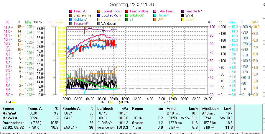 Sie befinden sich auf die Seite: Start Monat Grafik/Tabelle             Wetterdaten von Wetterstation Vantage Pro 2 plus
